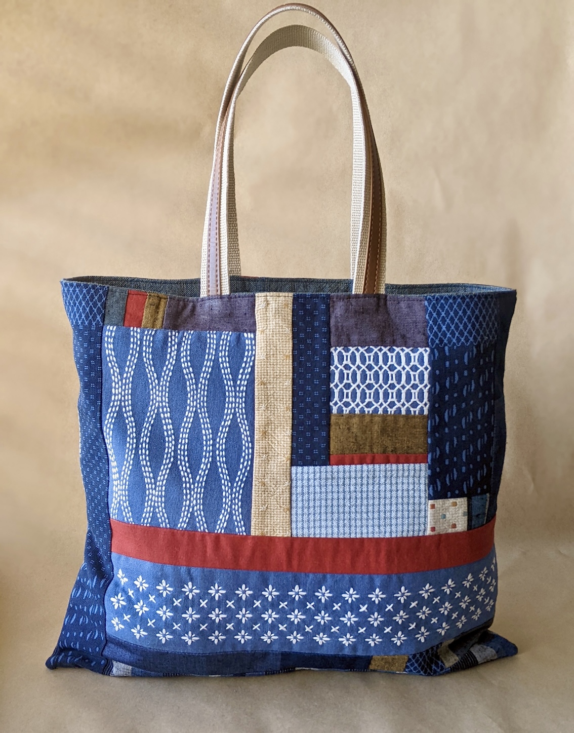The Gabi Tote covers a number of sashiko techniques including hitomezashi (one stitch sashiko). The bag is an idea of what can be made out of the samples and the instructions are included.