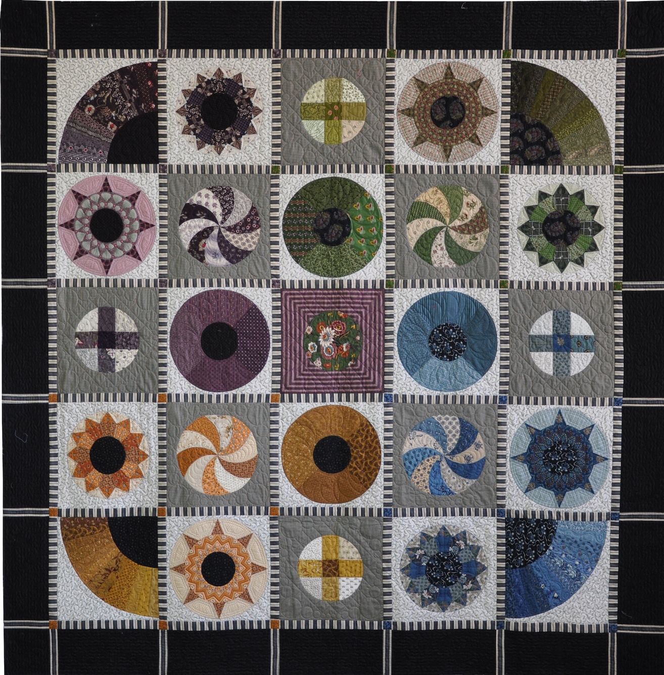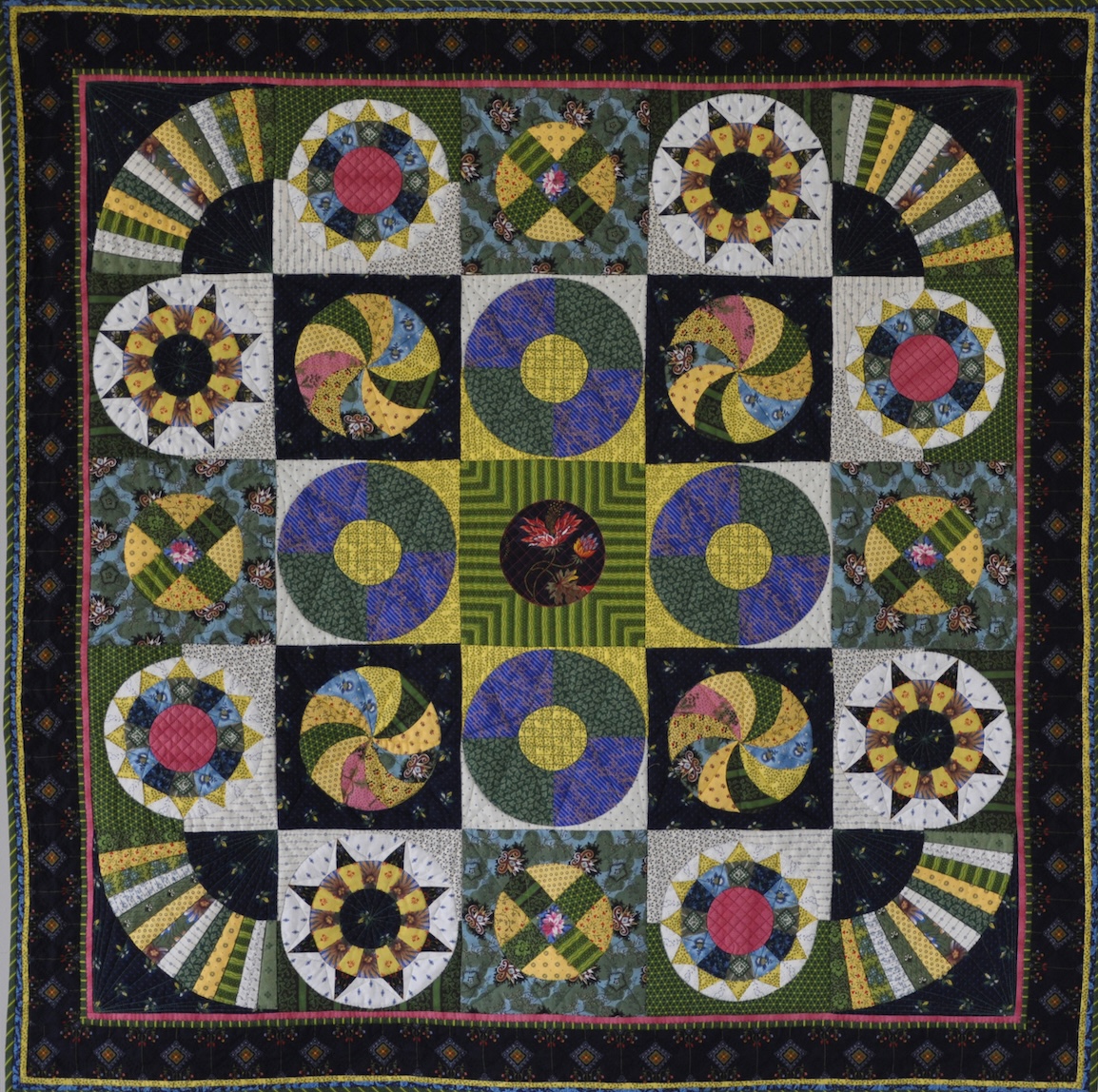 I will be teaching 3 different quilts in this class, but they all have similarities. I love circular patterns, and these quilts all rely on mostly circular patterns inserted into squares. The class focusses on techniques that you will be able to use repeatedly. I love using lots of fabrics in a quilt too and if I run out of something I add another.